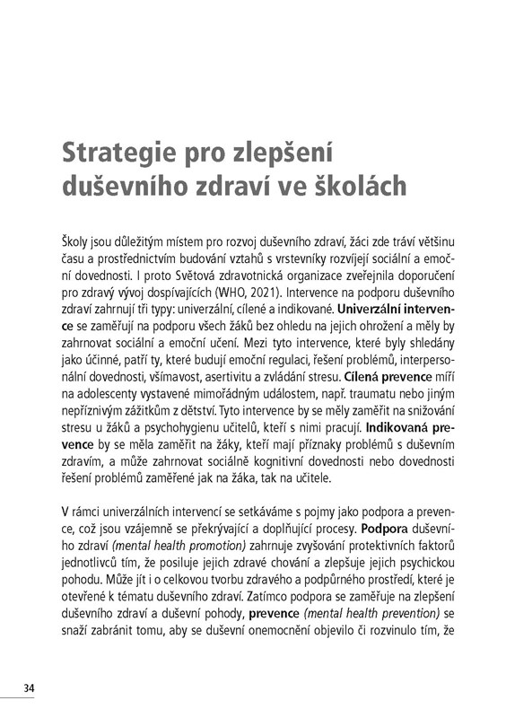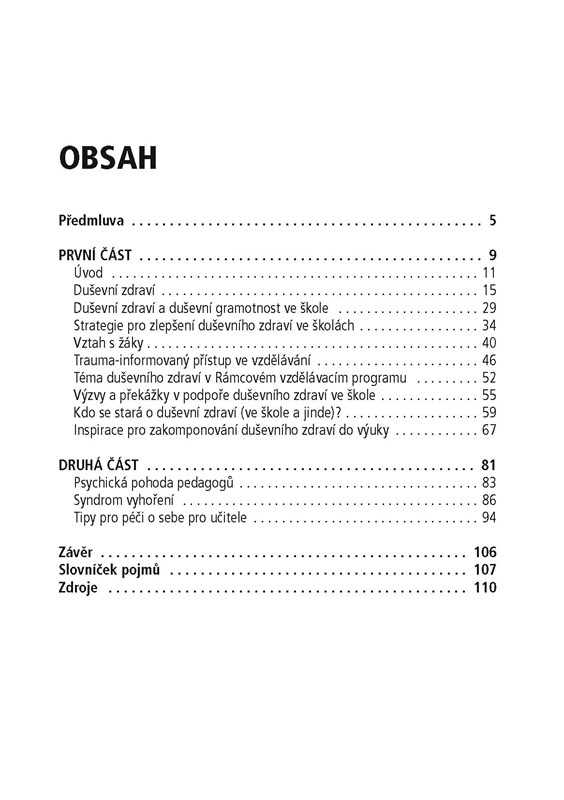 Publikace si klade za cíl poskytnout informace o možnostech podpory duševního zdraví žáků i učitelů a předložit nabídky, co mohou sami pedagogové dělat.