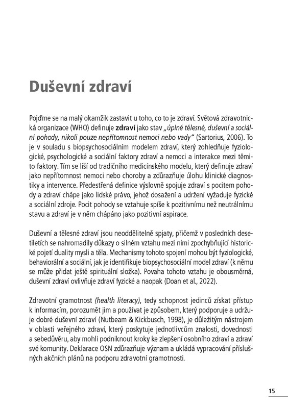 V první části knihy se teoreticky vymezuje duševní zdraví ve škole a ukotvuje téma tak, aby pedagogům nabídlo jasné a praktické tipy, jak včlenit téma duševního zdraví do výuky a běhu školy, jak předat žákům vývojově adekvátní informace o duševním zdraví, a naučilo děti se o své zdraví lépe starat.