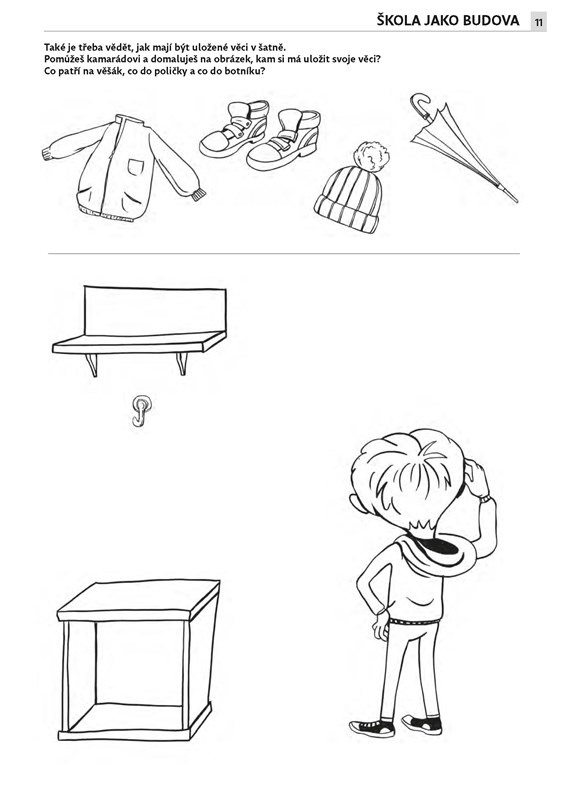 Sešit obsahuje 33 pracovních listů s názornými ilustracemi a zábavnými úkoly, na základě kterých si předškolák nebo prvňáček lépe uvědomí, co všechno ho po organizační a sociální stránce ve škole čeká.