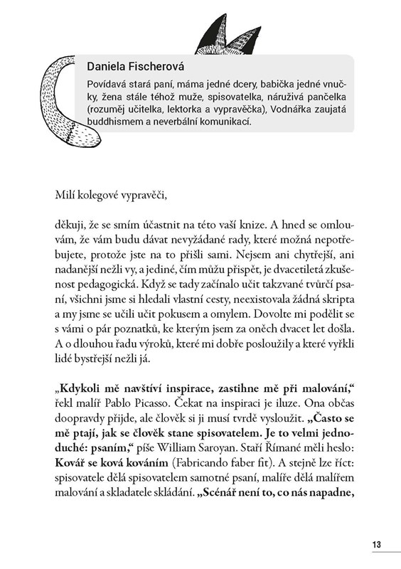 A jak to nakonec dopadne? Dá se překonat ostych, zkrotit strach a začít psát? Inu, dá. V literárním salónu U stříbrných lišek o tom vědí své. Shromáždila se v něm pestrá společnost, která čeká, až vstoupíte. Nabídnou vám malou ochutnávku ze svých autorských dílen a spisovatelka Daniela Fischerová přidá hrst rad a fíglů, které se při psaní mohou hodit.