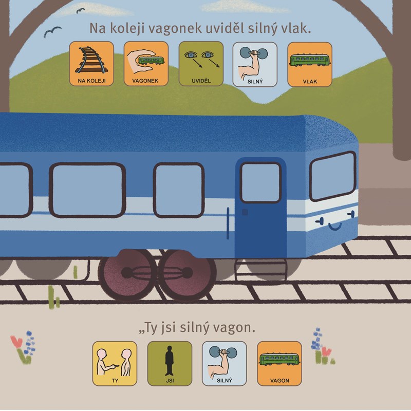 Snad všechny děti mají rády vlaky, nádraží a všechno co s nimi souvisí. To vše přináší i pohádka o modrém vagonku vyprávěná v podobě piktogramů. Zvědavý vagonek, který by chtěl každému pomáhat, zažívá různá dobrodružství, a nakonec sveze děti na výlet.