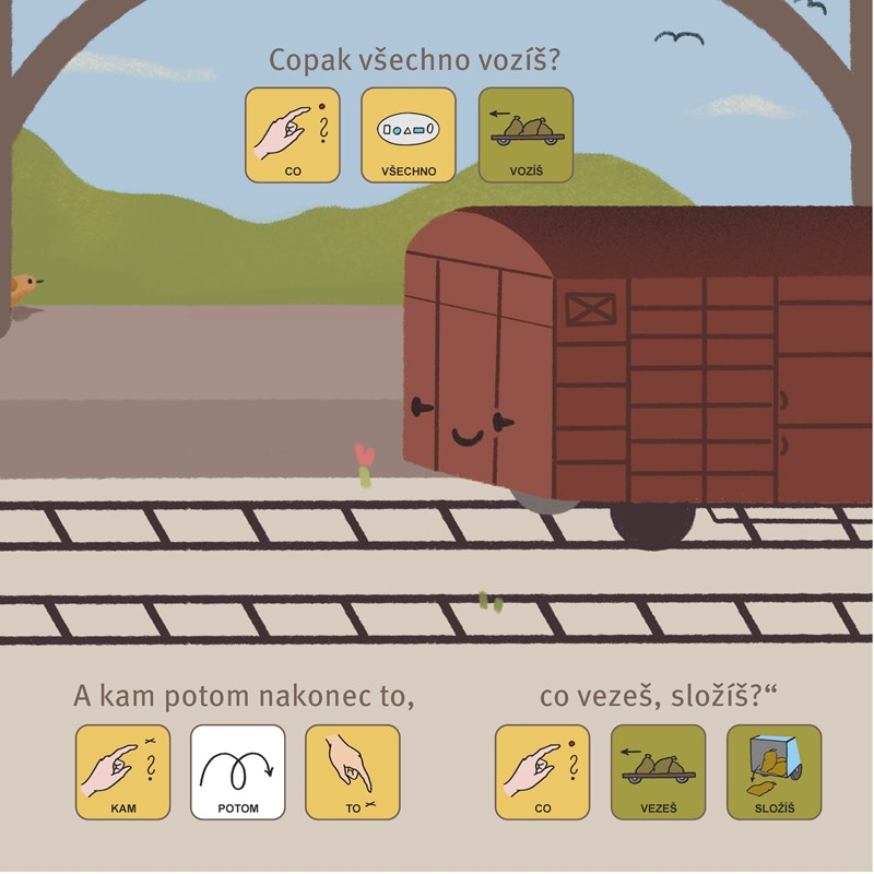 Jednoduchý příběh je doprovázen velkými ilustracemi, ale také obrázky (tzv. piktogramy), které odrážejí podobu věty a pomáhají tak pochopit a vnímat větnou stavbu. Piktogramy napomáhají v mluvení i čtení a podporují čtenářské i předčtenářské dovednosti.