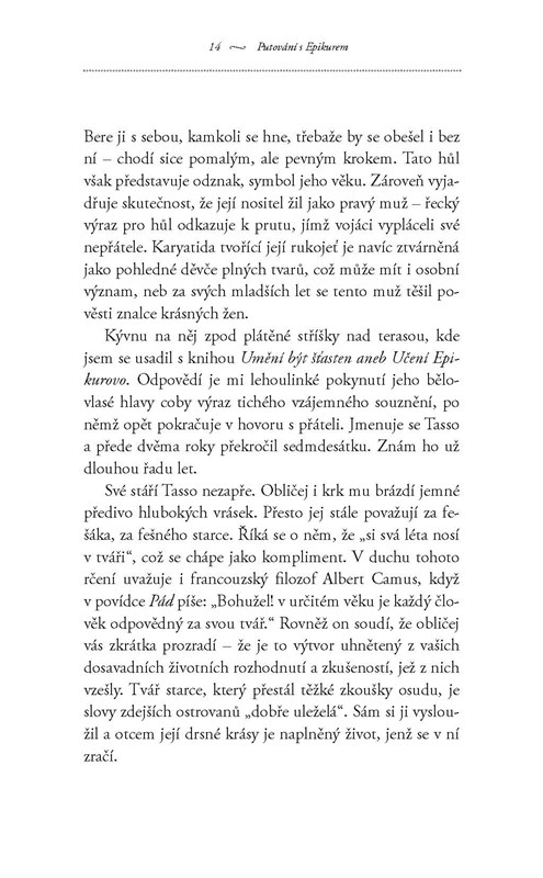 Putování s Epikurem je útěšnou procházkou po egejských luzích a hájících a také krajinami stáří, k níž je Klein tím nejpovolanějším ze všech průvodců.