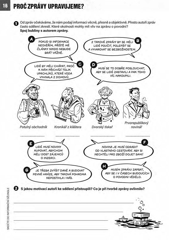 Nová média sice mladou generaci neděsí, ale pochopení principů mediální komunikace vyžaduje poněkud hlubší ponor. Pojďme společně prozkoumat povahu informací, principy jejich mediálního šíření a ovlivňování i lidskou snahu informace zkrotit a vnutit jim řád. Pomocí pracovních listů podnikneme výpravu do historie, zjistíme, že kriticky číst nemusíme jen slova, a nahlédneme za obzor psaný umělou inteligencí.
