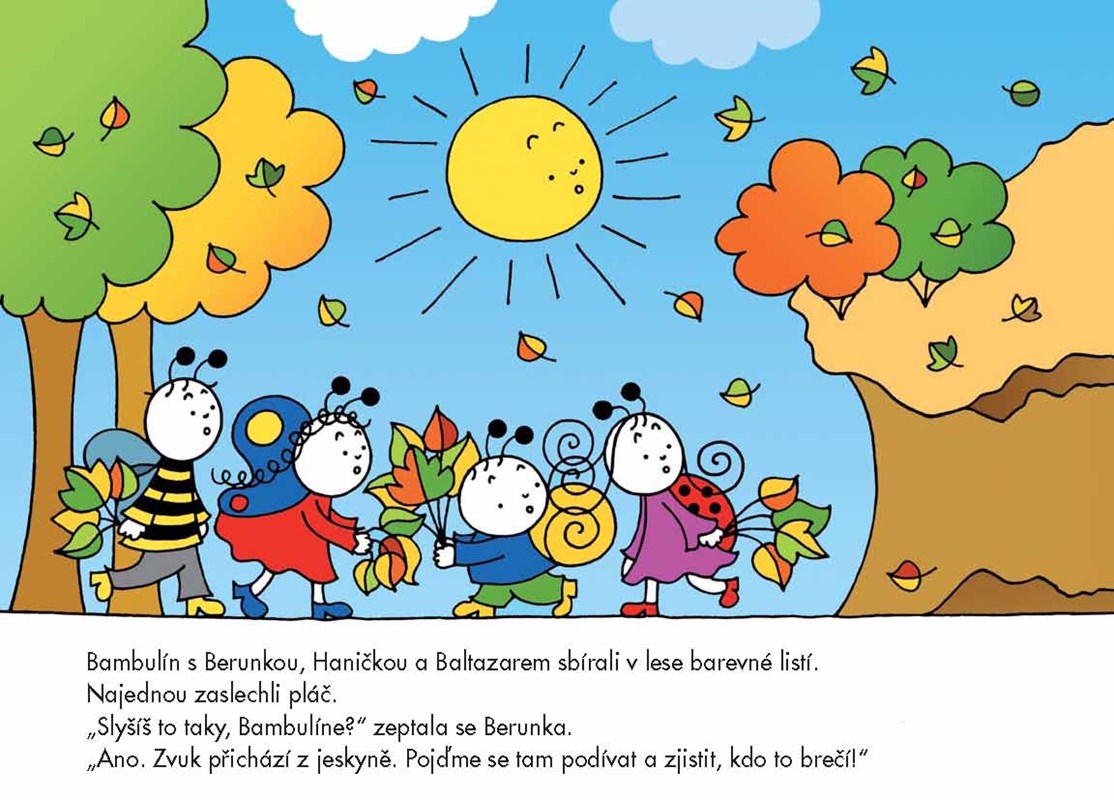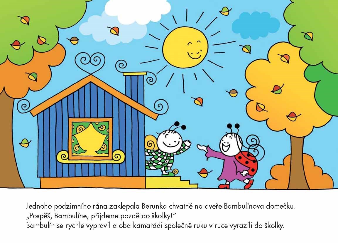 V druhé knížce o berušce Berunce a šneku Bambulínovi se děti dozvědí, jak zachrání naši přátelé broučka Bublinu a přitom najdou nového kamaráda – pavouka, který zpočátku vypadá dost nebezpečně. Knížka však obsahuje příběhy dva. Podle druhého je také pojmenována: Bambulín a Berunka ve školce. Děti prožijí s broučky, motýly a dalšími postavičkami jeden celý den ve školce. Dozvědí se, co všechno je tam čeká, pokud do školky teprve půjdou. Malí školáčci mohou porovnat, zda se jejich školička podobá té z knížky.
