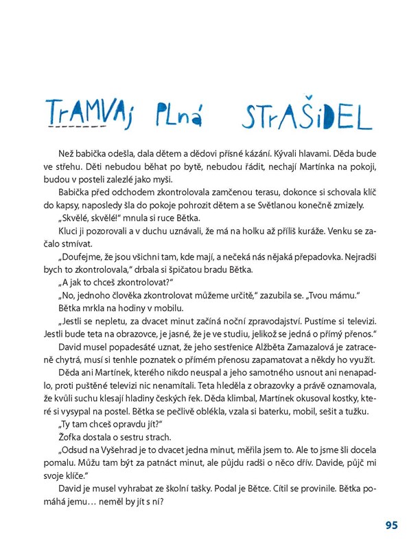 Desetiletý David z Prahy řeší zapeklitou situaci. Za okny jeho pokoje se v noci vznášela tramvaj plná strašidel! Začaly prázdniny a David odjel do moravského Uničova. Nad bratranci