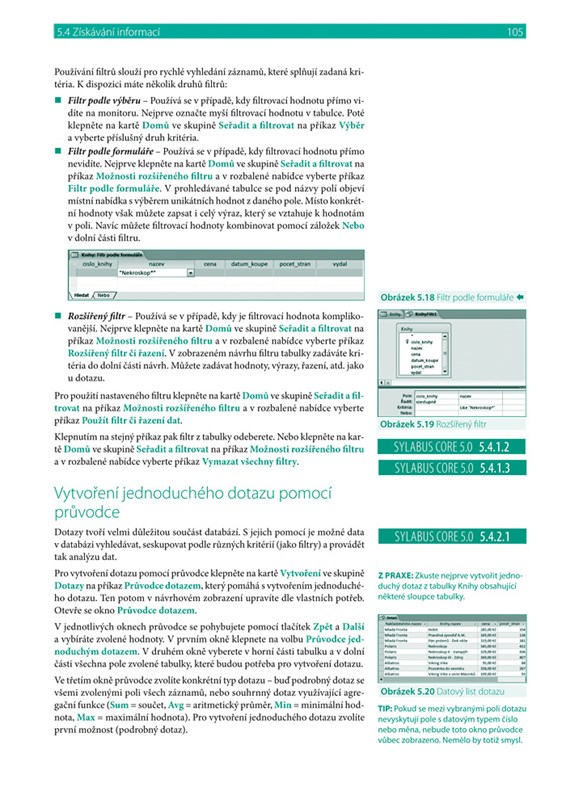 • Výklad pokrývá vše důležité a je doplněn množstvím poznámek, tipů, názorných obrázků a přehledových tabulek, nechybí ani přímé odkazy na konkrétní body sylabu ECDL. Průvodce představuje nejucelenější zdroj informací a postupů demonstrovanýchna aktuálním, v České republice nejpoužívanějším programovém vybavení.