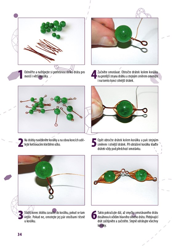 Pokud rádi pracujete s korálky a chtěli byste si vyzkoušet také drátování, držíte v rukou správnou knihu. Drátků se není třeba bát a v kombinaci s korálky si vyrobíte šperky, které budete s hrdostí nosit. V první kapitole se seznámíte s používanými materiály a pomůckami, dále se krok za krokem naučíte jednotlivým drátovacím technikám a postupům jako je např. výroba spirály, korálkový výplet či drhání. Poté se již můžete bez obav pustit do výroby 24 originálních šperků – náramků, náhrdelníků, prstýnků, náušnic a broží.