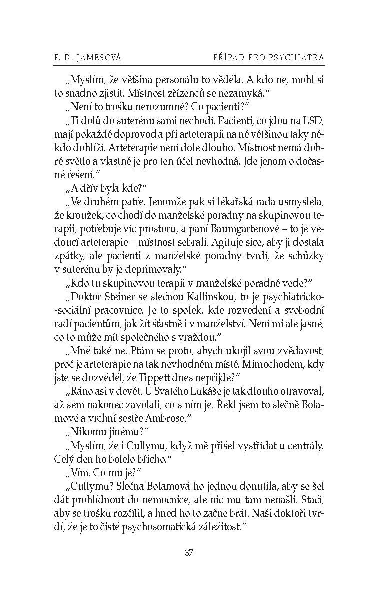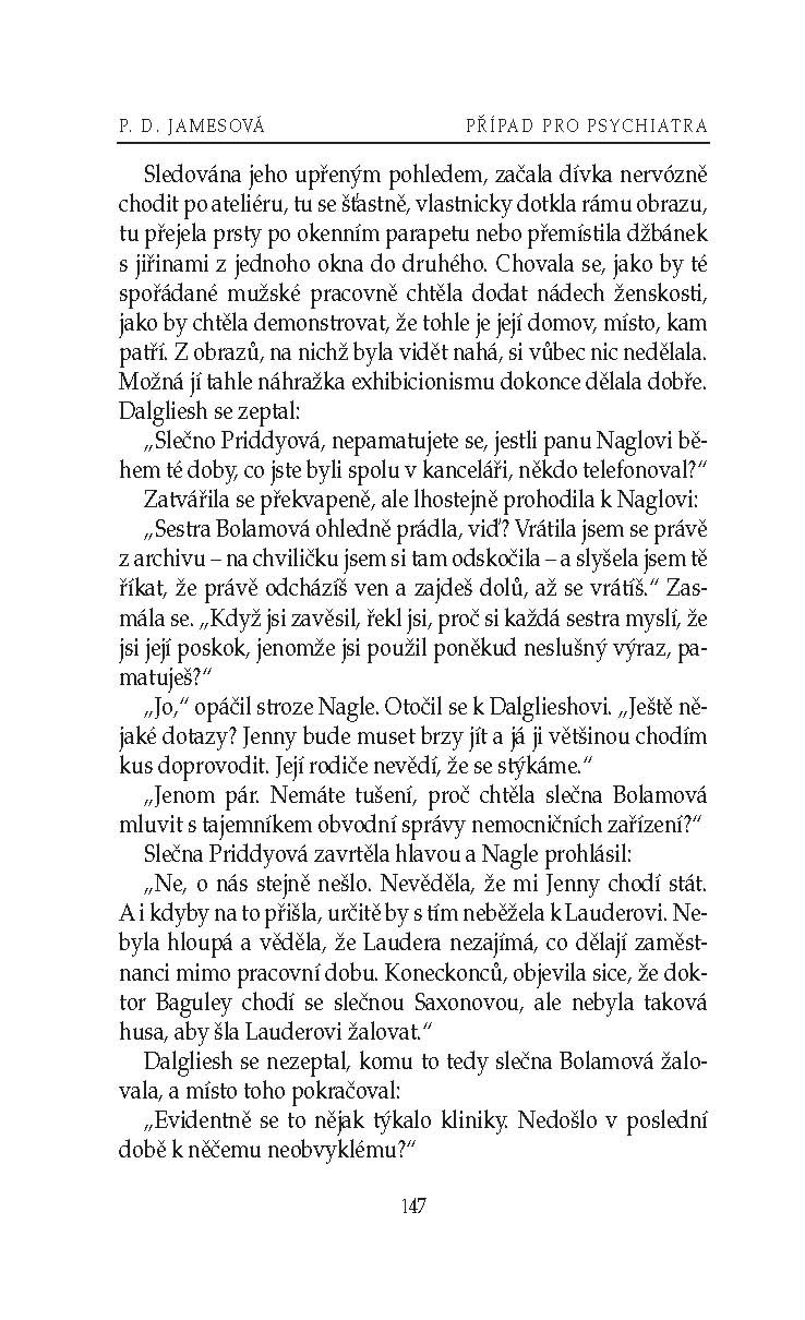 Hrůzostrašný výkřik rozřízne ticho večerní psychoterapie. V přízemí Steenovy psychiatrické kliniky je nalezeno ženské tělo s dlátem zabodnutým přímo do srdce. Superintendant Dalgliesh ze Scotland Yardu, který je právě na nedalekém literárním večírku, musí přispěchat, aby zločin vyšetřil a dokázal, kdo zavraždil tuto všemi nenáviděnou vrchní zdravotní sestru...