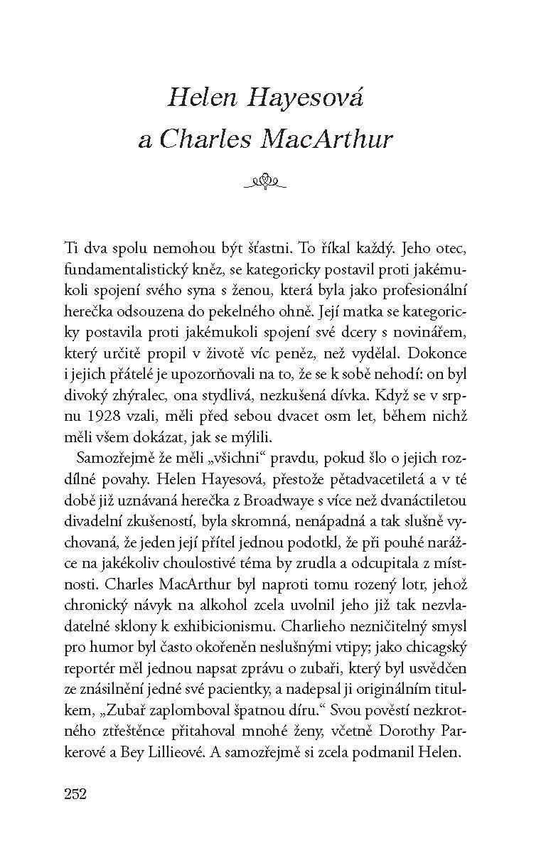Příběhy známé i méně známé – od vášnivého vztahu Antonia a Kleopatry a proměnlivého vztahu Alžběty I. a Roberta Dudleyho, přes vzájemnou oddanost Marie Antoinetty a Ludvíka XVI. na sklonku jejich života, až po svědomitou péči Eleanory o Franklina D. Roosevelta se před námi rozprostírá obraz lásky zahrnující svět královských dvorů, politiky, literatury, divadla i filmového plátna. Kniha zahrnuje i příběhy moderní doby, jako například vztah Jacqueliny Bouvierové a Johna F. Kennedyho, Katherine Hepburnové a Spencera Tracyho nebo Joanne Woodwardové a Paula Newmana.