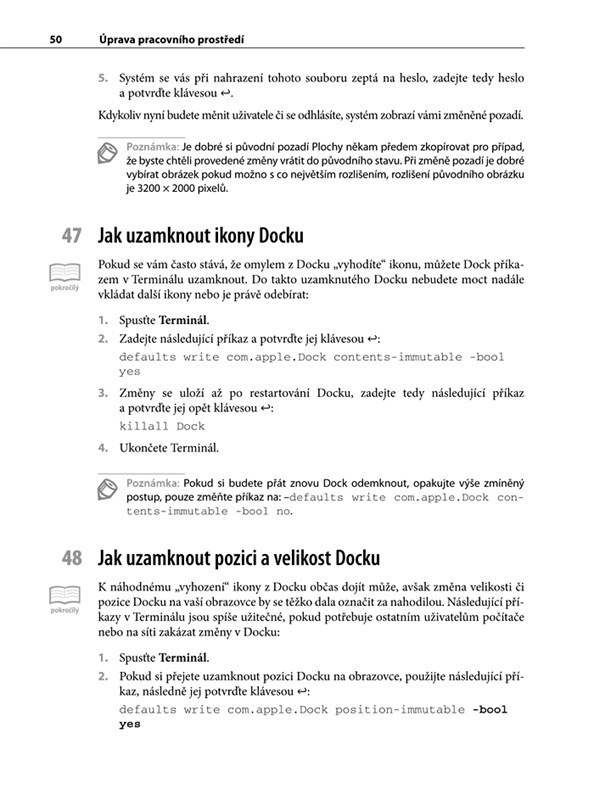 Kniha je vhodná jak pro českou, tak pro anglickou lokalizaci Mac OS X