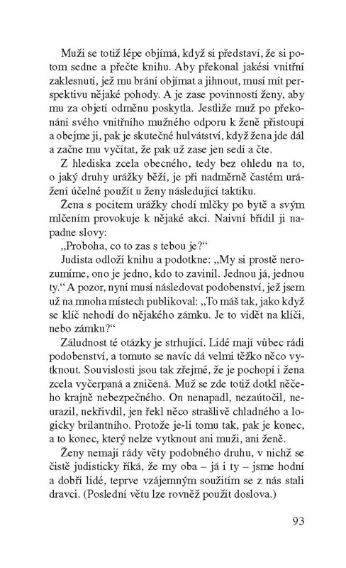 Ano, to by bylo ideální. Protože však náš svět dokonalý není, manželé jsou si nevěrní, trápí jeden druhého a rozvádějí se. Ovšem jen ti, kteří neovládají manželské judo.