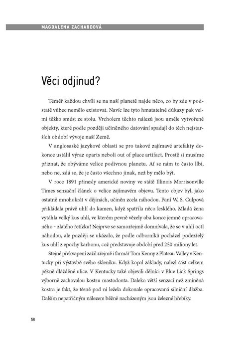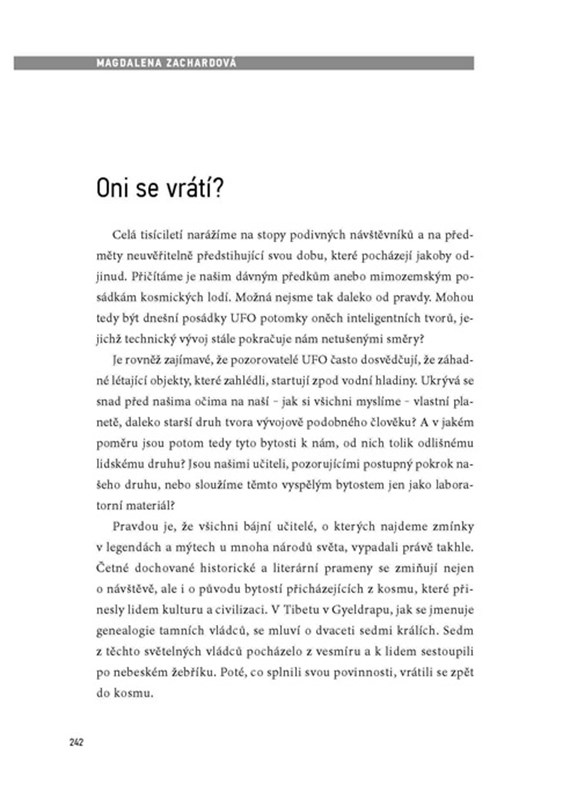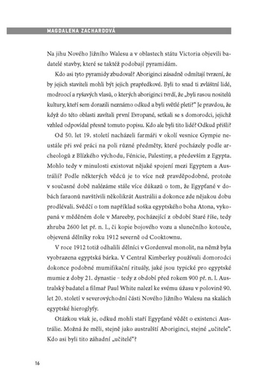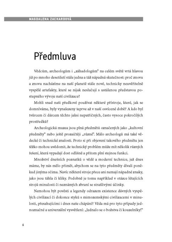 Vědcům, archeologům i záhadologům na celém světě vrtá hlavou již po mnoho desetiletí stále jedna a táž nápadná skutečnost: Proč znovu a znovu nacházíme na naší planetě stále nové, technicky neuvěřitelně vyspělé artefakty, které se nijak neslučují s ustálenou představou postupného vývoje naší civilizace? Magdalena Zachardová se ve své nové knize zaměřuje na právě takové záhady a provádí nás po místech, která s nimi jsou spojena.