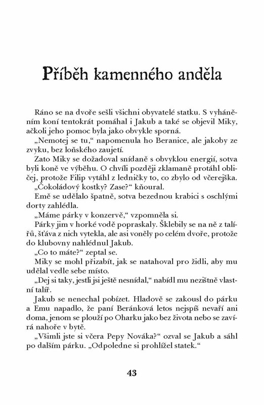 Jezdecká škola Oharek se vrací! Uplynul rok a nad Oharkem se zase stahují mraky. Olívie tentokrát statek dočista zničí, pokud Ema a Filip nenajdou dost síly, aby překonali dozvuky temného příběhu, který se tu odehrál před mnoha lety. Oba se naštěstí mohou spolehnout na přátele z jezdecké školy, ale, jak se zdá, koně Mirákla a Hamilkara už nezachrání nikdo. Nebo snad přece…?
