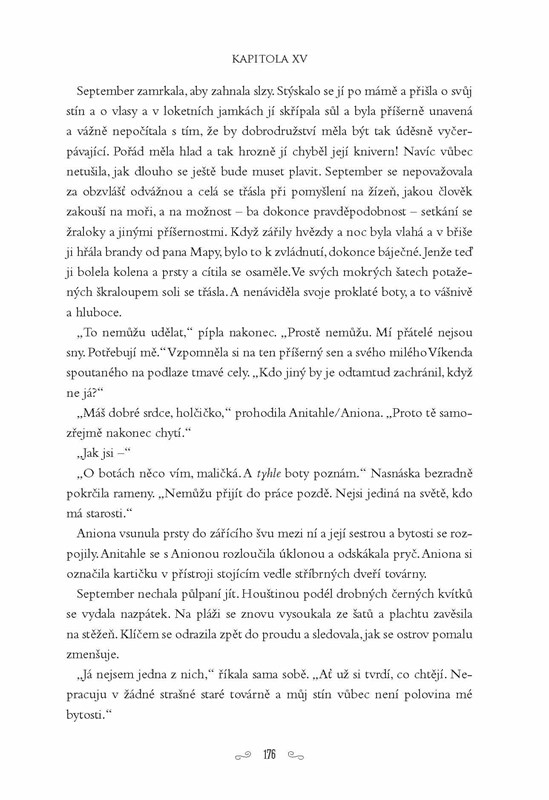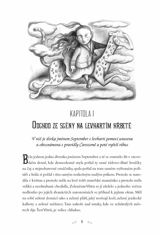 Protože se malá September narodila v květnu a protože měla na levé tváři mateřské znaménko a protože měla veliká a neohrabaná chodidla, zželelo se jí Zelenému Větru a jednoho dne jí na své Levhartici mírných vánků odnesl do Čarozemě. Jenomže v Čarozemi se dějí všelijaké věci a September se bude muset moc snažit, aby porazila zlou Markýzu a opět nastolila pořádek. Pomáhat jí v tom budou noví kamarádi, drak A-až-L, který má moc rád knihy, a trochu chlapec a trochu džin jménem Víkend.Nesmírně poetické, imaginativní a humorné vyprávění, v němž se setkáte se spoustou zajímavých a bizarních postav i postaviček a prožijete neuvěřitelná dobrodružství, která jen hýří fantazií.