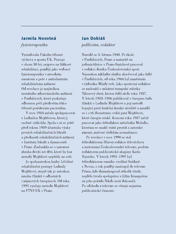 Rehabilitační sestra Ludmila Mojžíšová vynalezla revoluční cvičební metodu, která pomohla tisícům pacientů s chorobami pohybového aparátu i s nemocemi, jež s pohybovým aparátem zdánlivě nesouvisejí. Metoda se skládá z deseti (plus dvou) jednoduchých cviků, jimiž lze nejen odstranit chronické bolesti páteře a kloubů či zmírnit menstruační problémy, ale také zlepšit plodnost u těch, kteří se léta domnívali, že nedokážou na svět přivést vlastního potomka. (Cvičební doporučení platí i pro muže, jejichž plodnost