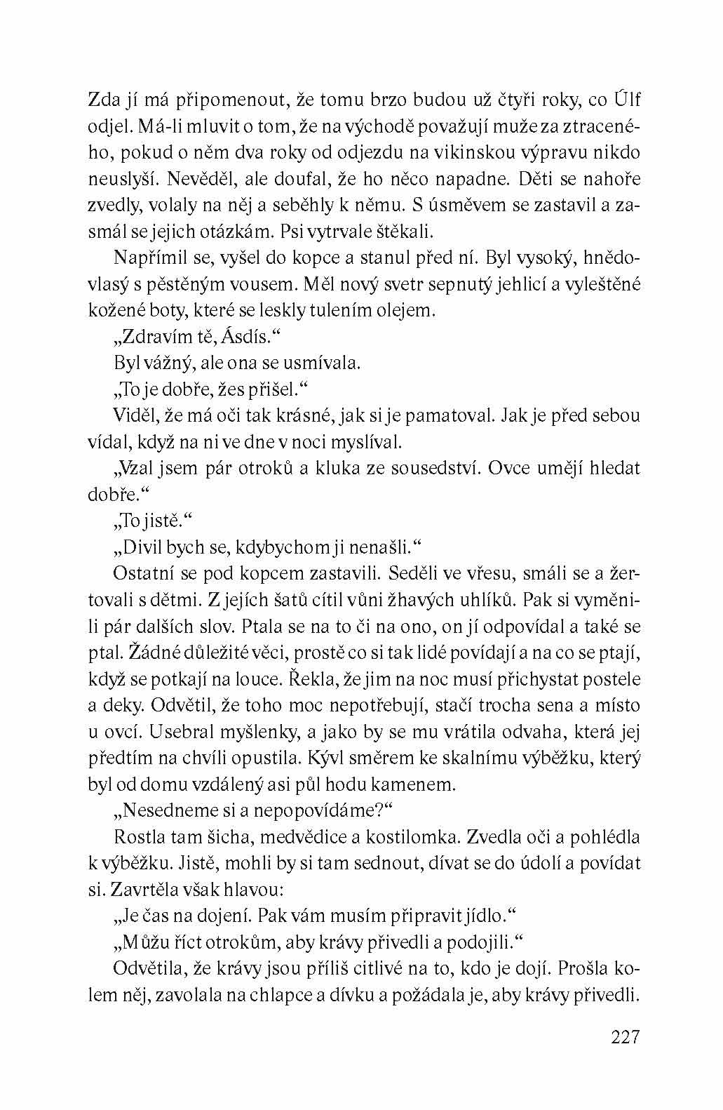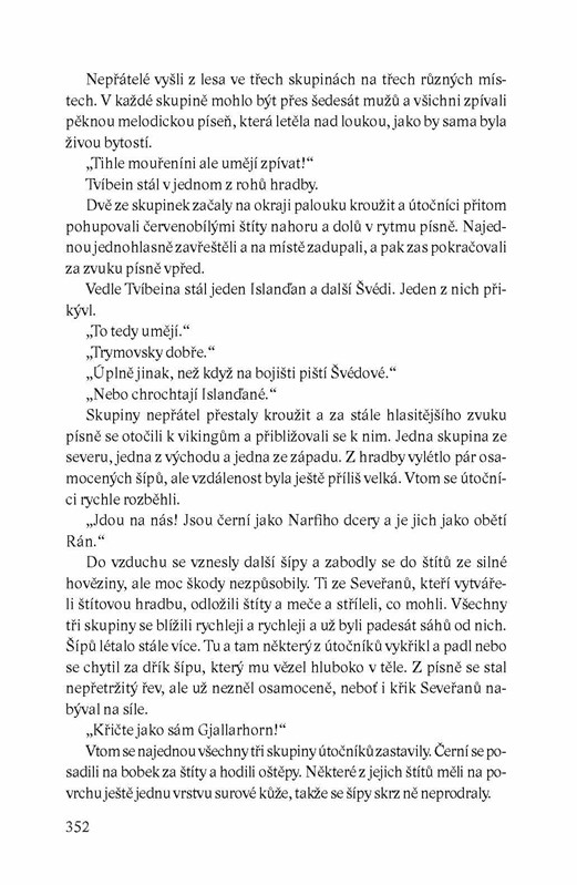 „Přichází nové zvyky, nové časy, Bílý Kristus. Všechno staré umírá, ve Švédsku i Gautlandu, v Dánsku i v Norsku. Není tomu tak? Co se stane s bohy našich předků, se svatyněmi a výpravami? Co bude s obětováním? Jak se změní hry dětí a uvažování dospělých? A co samy zákony, skaldové a zákonopravci? Vše zmizí. Mladší synové z mnoha rodin ještě vyjíždějí na výpravy a věří, že staré časy se svými obyčeji přetrvají. Ty vidíme tady okolo sebe. Ale nejstarší synové, dědici půdy, sedí doma a rozhodují o statcích, o lodích i o celé zemi, a krok za krokem přivádějí časy nové.“
