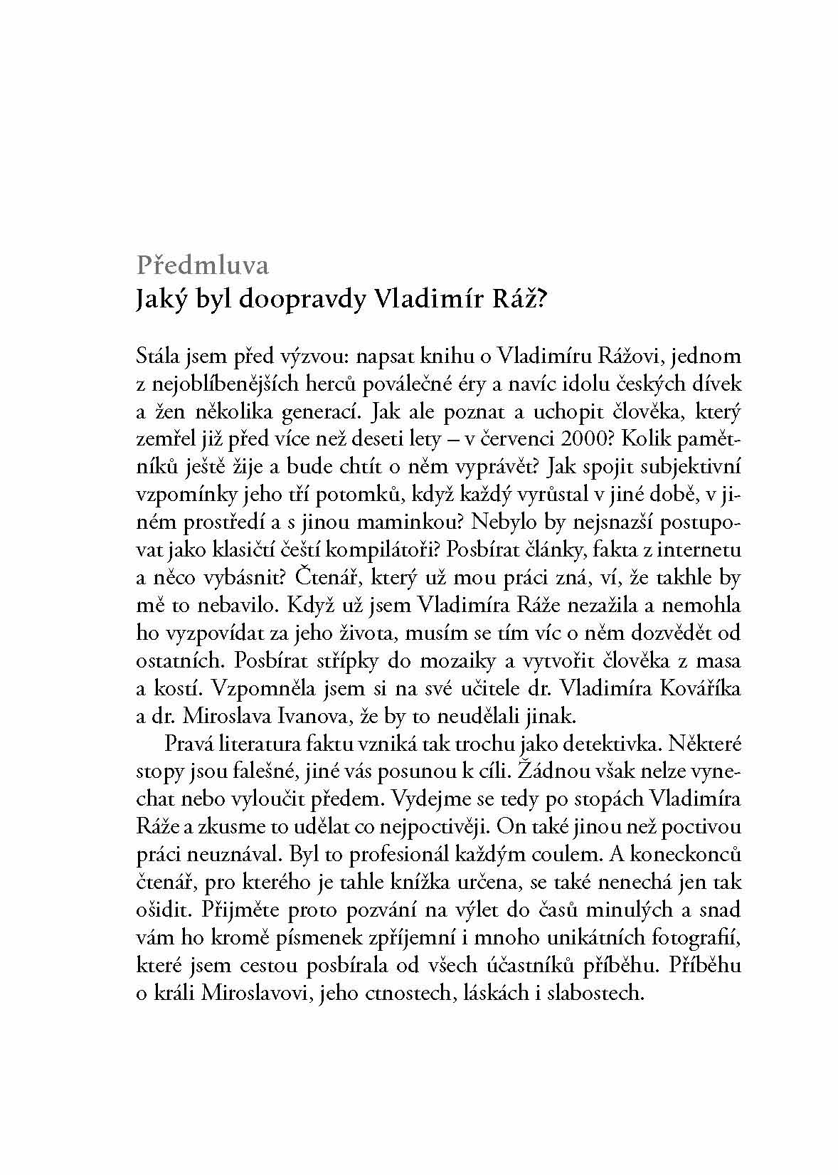 Ve své nové knize se Blanka Kovaříková vydává po stopách jednoho z nejoblíbenějších herců poválečné éry, idola žen a dívek mnoha generací, kterého proslavila především postava krále Miroslava z notoricky známé pohádky Pyšná princezna. Krok za krokem může čtenář spolu s autorkou poznávat skutečnou tvář známého herce, jenž se nesmazatelně zapsal do filmové i divadelní historie. Na herce v knize zavzpomínali jak jeho blízcí, tak kolegové.