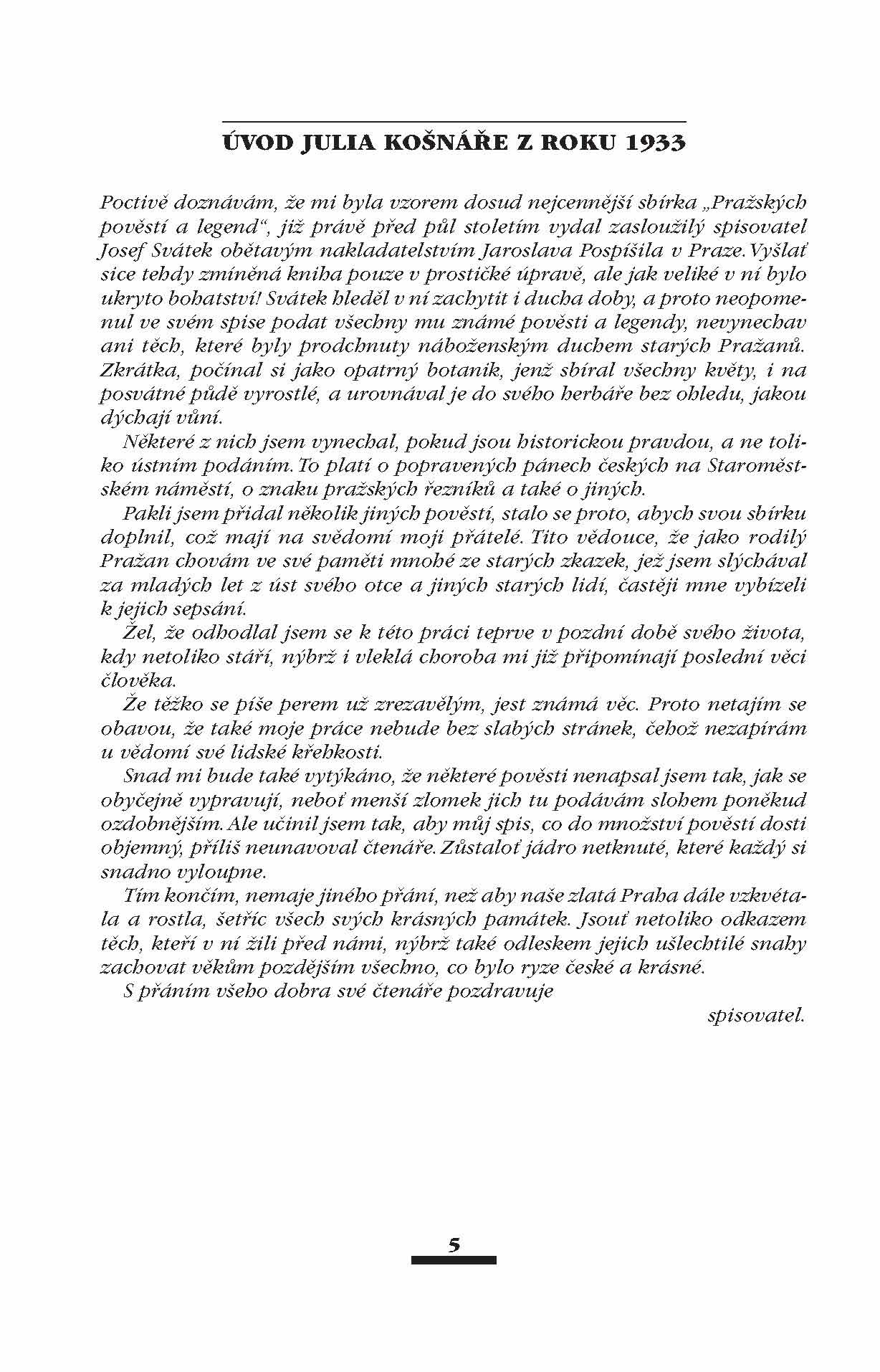 Soubor pověstí a legend, které se vážou k jednotlivým pražským místům či domům a také k různým postavám, které kdy v Praze žily a působily. Kniha podává čtenáři nový, dosud málo známý obraz staré Prahy, zejména v souvislosti s těmito legendami, jejich historickým podkladem i odrazem těchto pražských legend v české literatuře.