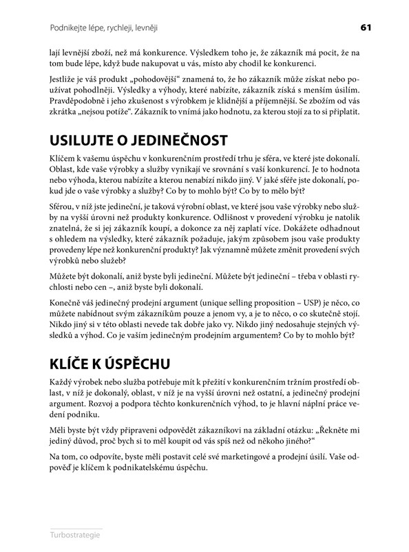Sám autor svou Turbostrategii hodnotí jako „intenzívní, rychlý, krátký, srozumitelný a efektivní způsob jak nastolit a realizovat jakoukoliv strategii.“ Pomůže vám dosáhnout výsledků rychleji a snáze než kdykoli předtím. Tato kniha není kompletním návodem „jak na to" – je ale nejlepší možnou knihou, po které sáhnout, potřebujete-li informace, které nenajdete nikde jinde a které skutečně pomohou.