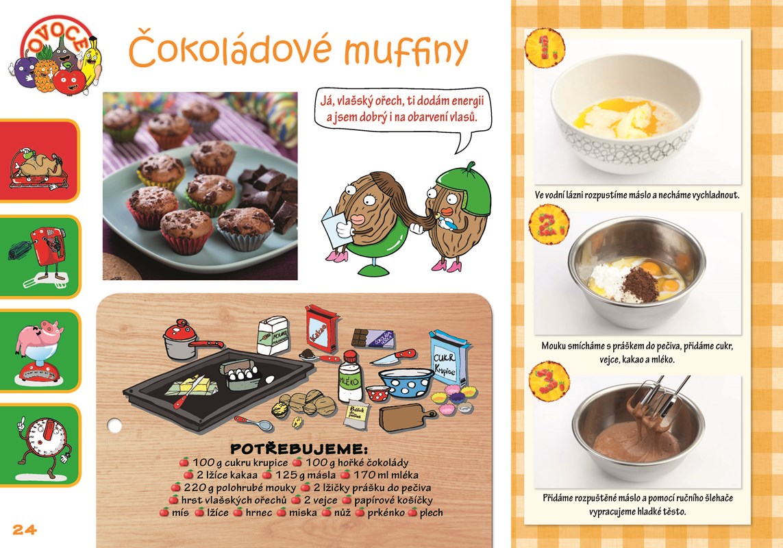 nebo jen tak, když vás honí mlsná. Podle podrobných fotonávodů „krok za krokem“ si tyto neodolatelné chuťovky můžete připravit úplně sami nebo jen s malou pomocí dospělých. Nachystejte kamarádům nadýchané čokoládové muffiny, lahodné domácí chipsy, ananasové chuťovky, rajčatové minipizzy nebo spoustu dalších vynikajících dobrot, které budou ozdobou každého stolu!