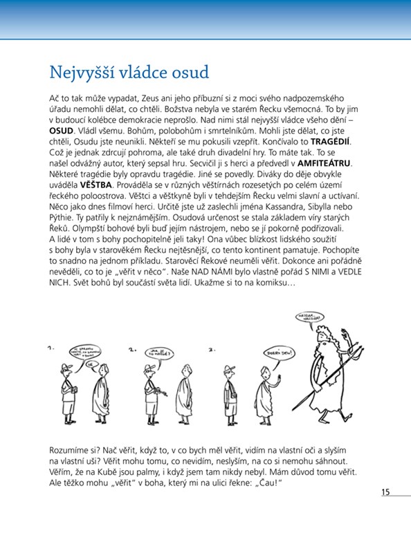 Stručné, vtipné a úměrně věku stravitelné vysvětlení toho, v co lidé z různých věků a různých kontinentů a kultur věřili, co vzývali. Starořecká božstva, názory řeckých filozofů na víru, buddhismus, Konfucius, náboženství ve starém Římě, křesťanství. islám,... Autor se snaží pomoci najít odpovědi na otázky, co je mezi nebem, které vidíme, a vesmírem, který tušíme za modrou klenbou, nebo v nás samotných. Kniha je napsána s cílem vyznat se v sobě, nenechat se napálit sektami, ani si neotrávit život rituály pověrčivosti.