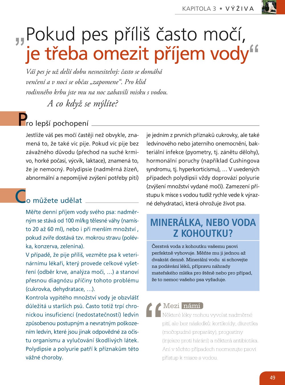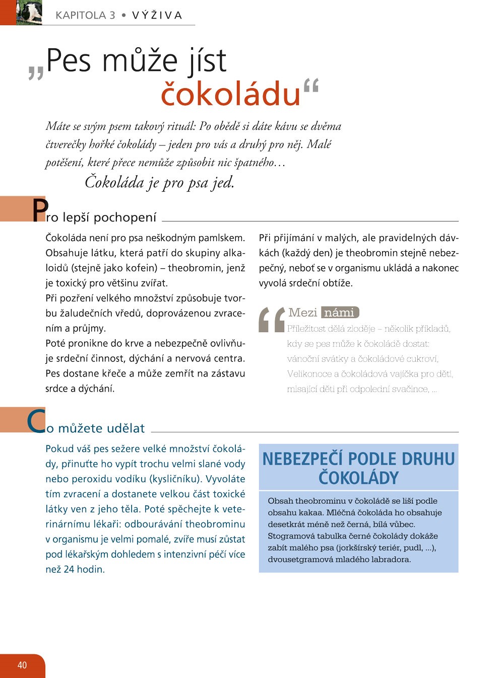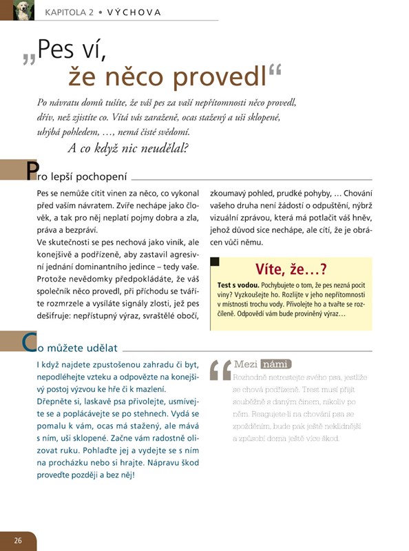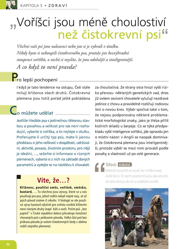 „Fena by měla mít alespoň jednou za život štěňata“, „Olizování tváře je projevem náklonnosti“, „U psích seniorů se nedoporučuje anestezie“.