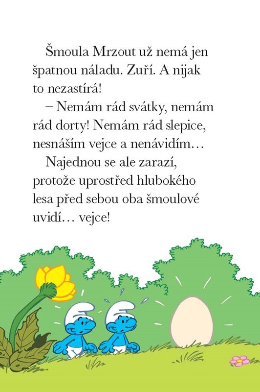 Šmoulové se chystají péct dort, ale nemají vejce. Když ho konečně na farmě seženou a dopraví do vesničky, zjistí, že je dřevěné. Nakonec v lese najdou jiné, ale čeká je velké překvapení...