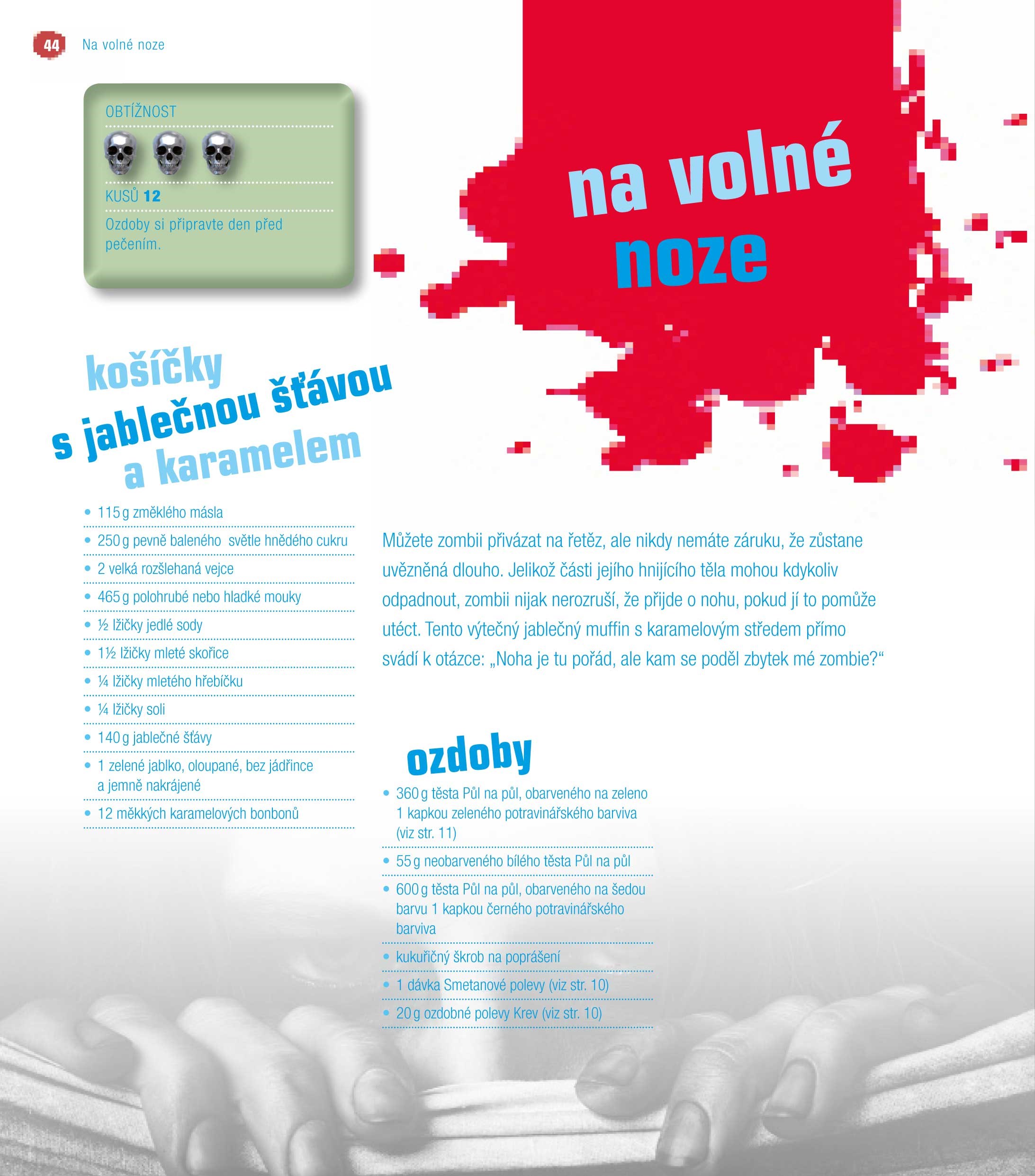 Recepty sahají od Vražedného kousance mokvajícího rosolem a završeného sladkým zubem až po Vzkříšení zombie, které představuje nemrtvou ruku vyčnívající z vynikajícího Bahenního muffinu.