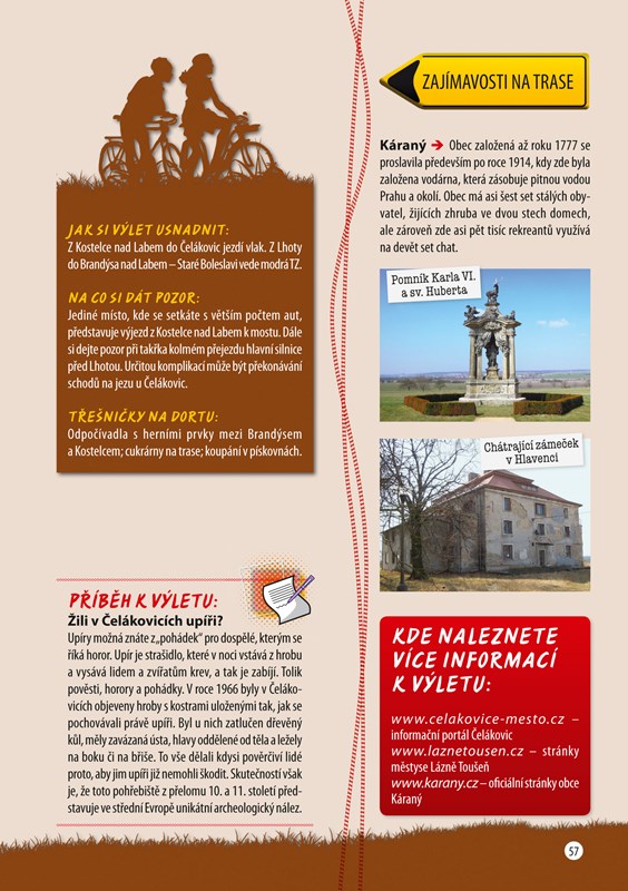 Chcete podniknout rodinný výlet na kole, ale nejste si jistí, zda ho zvládnou i vaše ratolesti? Máme pro vás řešení v podobě zbrusu nového průvodce, ve kterém naleznete 29 cyklovýletů mapující celé území České republiky. Všechny trasy jsme tentokrát vybrali s ještě větším ohledem na jízdu s malými cyklisty, tedy na bezpečnost a nízkou fyzickou náročnost, ale zároveň na co největší atraktivitu navštívených míst – zkrátka tak, aby výlet děti bavil. Přejeme Vám mnoho šťastných kilometrů a krásných zážitků…