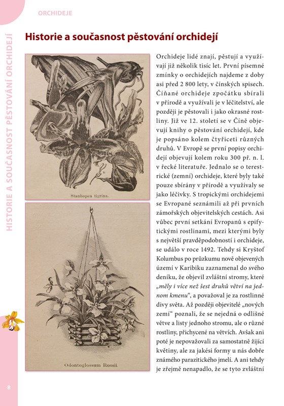 nádechem upoutají pozornost na první pohled a málokdo jejich kouzlu odolá. A právě všem příznivcům orchidejí, začínajícím i pokročilejším pěstitelům je určena tato nová publikace. V knize naleznete obrovské množství praktických rad a informací, stovky barevných fotografií a spoustu odpovědí na nejčastěji kladené otázky. Autor klade důraz na běžné a nejčastěji pěstované druhy, které je možné pěstovat v domácích podmínkách a péči o ně zvládnou i začátečníci. Na své si však přijdou i pokročilejší pěstitelé, jelikož nechybí popis některých exotických a méně známých druhů orchidejí.
