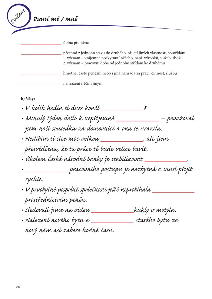 • konkrétní příklady užití slov ve větách,