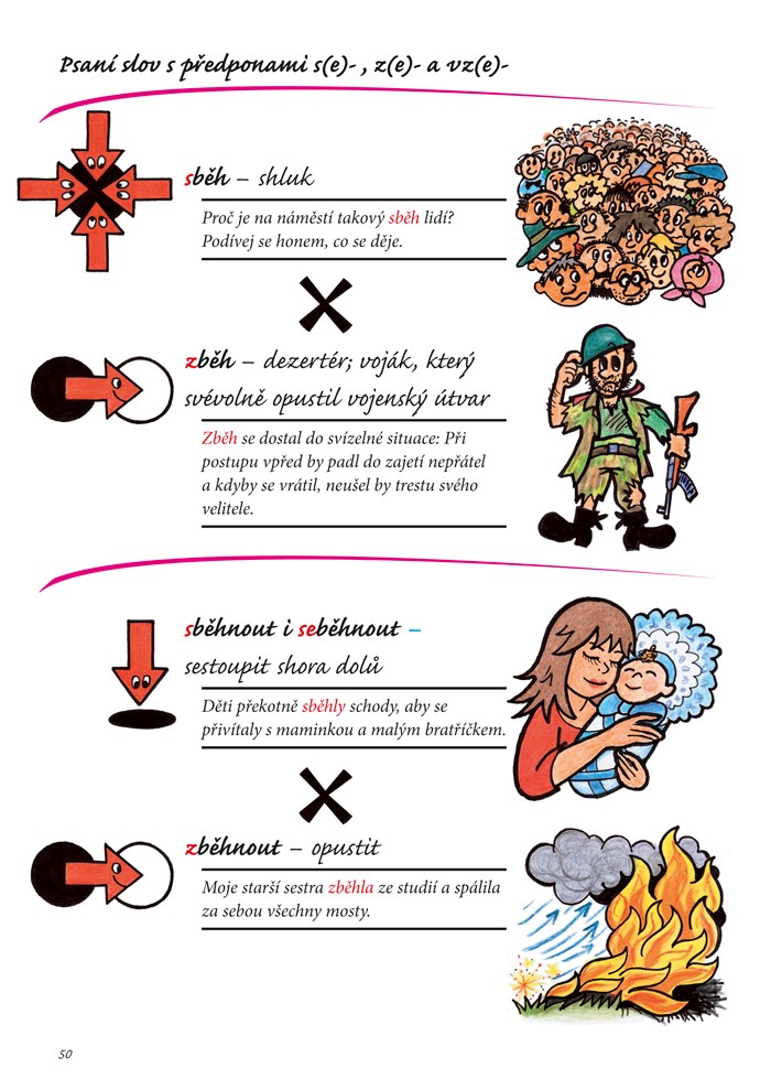• stručná pravidla správného psaní slov obsahujících bje, vje, bě, vě, pě, mně, mě, tvarů zájmena já, tedy mě a mně, a také psaní slov s předponami s-, z- a vz-.