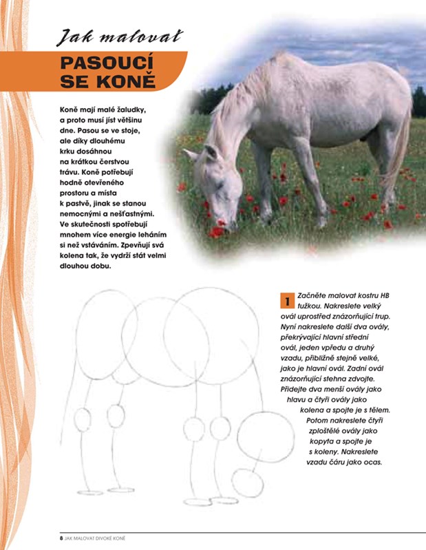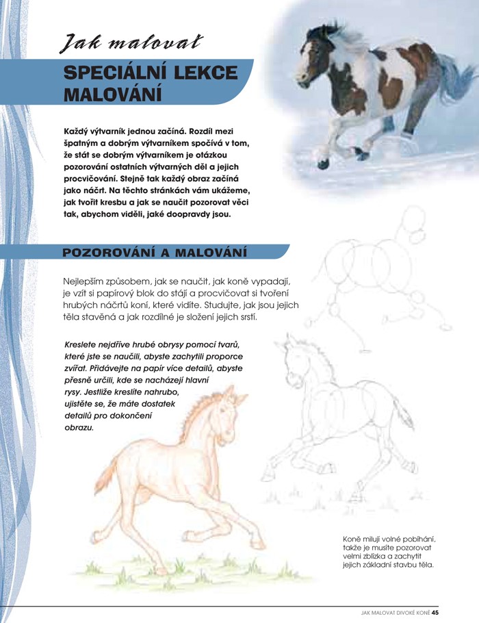 Používáním jednoduché metody „krok za krokem“ bude i ten nejnezkušenější výtvarník schopen živě a realisticky malovat divoké koně – od shetlandských poníků po mustangy.