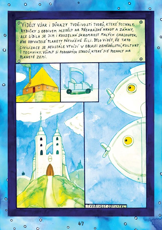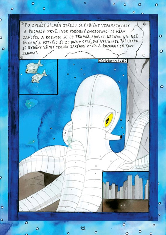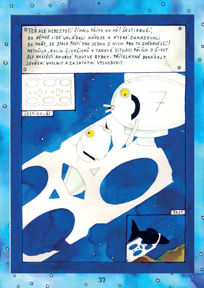 Komiksový příběh dvou umělých bytostí je určen dětem od 8 do 12 let. Na pozadí pouti dvou mechanických rybiček se odkrývají ekologické problémy na planetě Zemi. Příběh varuje před katastrofami způsobenými člověkem či samotnou přírodou. Záměrem je, aby se čtenáři choval k přírodě citlivě i ve zdánlivě nevinných situacích a mysleli na Zemi jako na jediný domov, který mají a který si nemohou dovolit svévolně ničit.