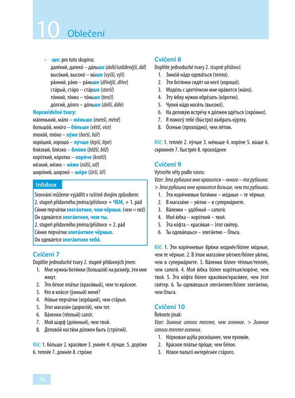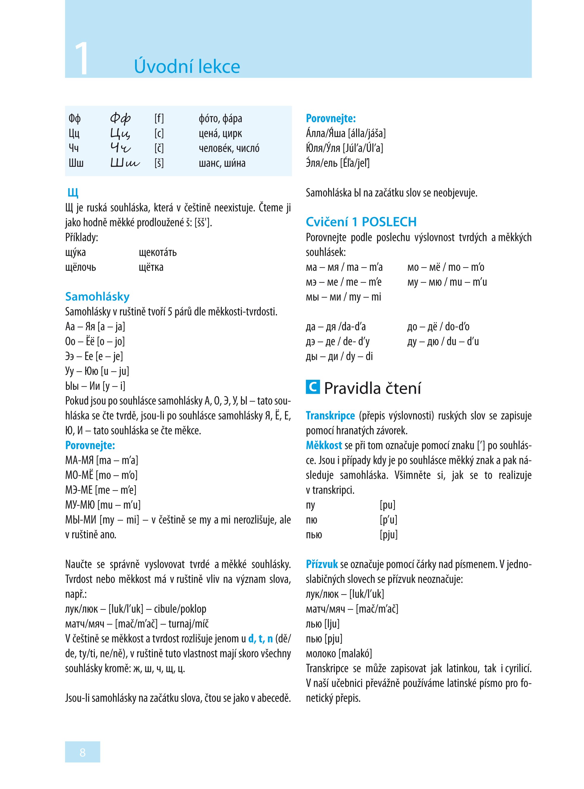 Ve 24 lekcích se naučíte základní gramatiku a osvojíte si slovní zásobu potřebnou v běžné komunikaci. Díky rozmanitým textům přibližujícím obvyklé situace (na nádraží, v hotelu, na nákupu, u lékaře, v bance, s přáteli) budete vědět, jak v dané chvíli reagovat. V infoboxech pak budete průběžně seznamováni s jazykovými zvláštnostmi, místními reáliemi a způsobem života v Rusku. Samozřejmostí jsou také rozmanitá cvičení, díky kterým si lehce zopakujete to, co jste se již naučili.