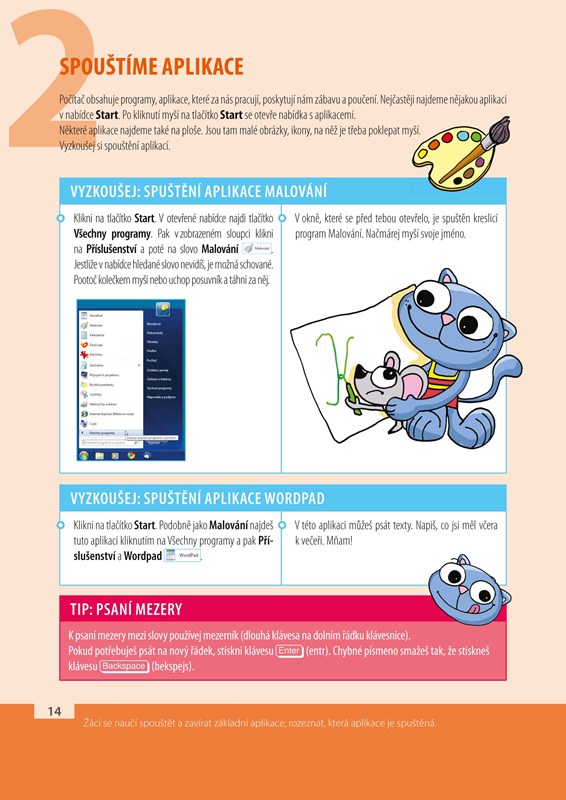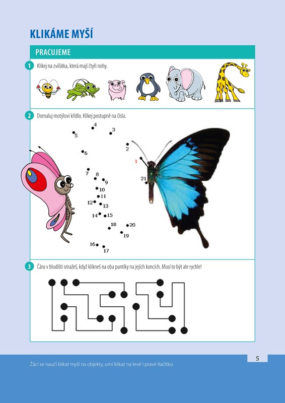 V jednotlivých kapitolách žáci kreslí obrázky, píšou a upravují texty, učí se ukládat svoji práci, prohlížet Internet a komunikovat e-mailem. Učí se zpracovávat informace v seznamech, tabulkách a grafech, přitažlivou formou se učí i základům algoritmizace.