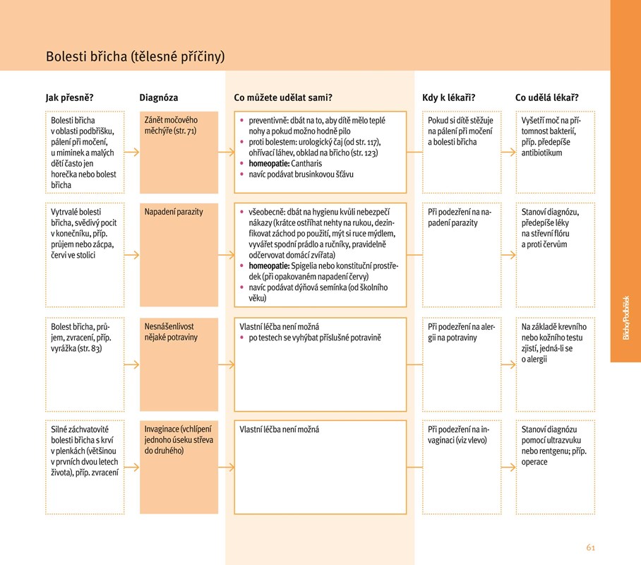 Pokud chcete vědět, jaká nemoc trápí vaše dítě (dříve než se odeberete k lékaři), a pokud patříte mezi příznivce šetrné domácí léčby, pak tato kniha a její praktický přehledný systém vám v tom určitě pomůže. V kapitolách tematicky řazených podle částí lidského těla a podle nemocí dojdete s pomocí pěti otázek k pravděpodobné diagnóze vašeho dítěte, a získáte rady, co v tuto chvíli máte udělat. V knize najdete návody na léčivé čaje, zábaly, koupele, obklady, bylinky, masti, homeopatika a další.