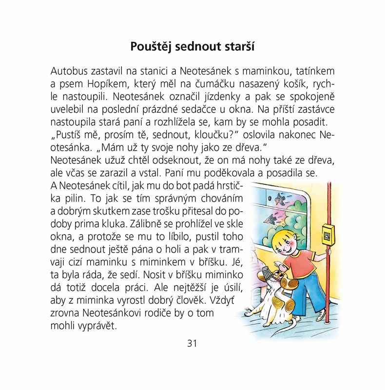 Nezdá se vám tahle pohádka povědomá? Ale pozor, tentokrát se nejedná o Otesánka, ale o Neotesánka. Tatínek ho totiž v lese nestačil dotesat, a doma mu v tom maminka zabránila. „Takhle ne,“ řekla, „to se přece dělá úplně jinak.“ Jak? Stačí mít po ruce tuhle knížku – a hned všichni pěkně pozdraví, poděkují, naučí se stolovat a celkově dobrému chování. Zkrátka neotesanci budou rázem pryč!