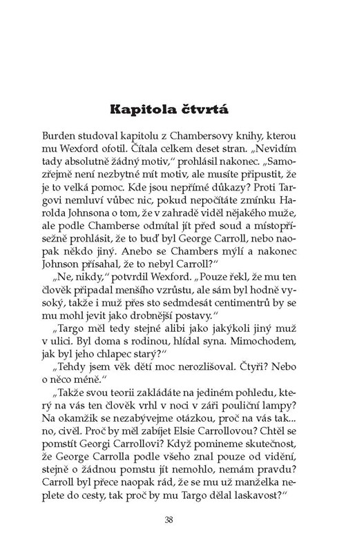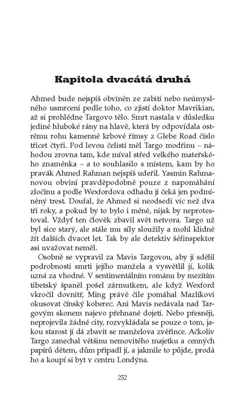 Když šéfinspektor Wexford náhodou na ulici zahlédne Erika Targa, rozložitého muže drobného vzrůstu s nestvůrně velikým mateřským znaménkem, který mu v minulosti znepříjemňoval život, nemůže uvěřit svým očím. Už dávno si myslel, že ho nikdy neuvidí. Ale Eric Targo je zpět a Wexford se znovu vydává po stopách dávných případů, aby konečně odhalil pravdu a usvědčil viníka, který dlouhá léta unikal spravedlnosti. Vrací se nejen k předchozím policejním vyšetřováním, ať už je to dosud neobjasněný případ smrti Elsie Carrollové nebo nevyřešená vražda chlapce, kterého našli uškrceného v místní botanické zahradě, ale i do vlastní minulosti. Kingsmarkham tehdy vypadal jinak než nyní, věci se zdály jednodušší, lidé bezstarostnější, Wexford prožíval svou životní lásku a jako policista teprve začínal. A hned při vyšetřování první vraždy narazil na Erika Targa, který ho od té doby pronásleduje jako zlověstný přízrak.