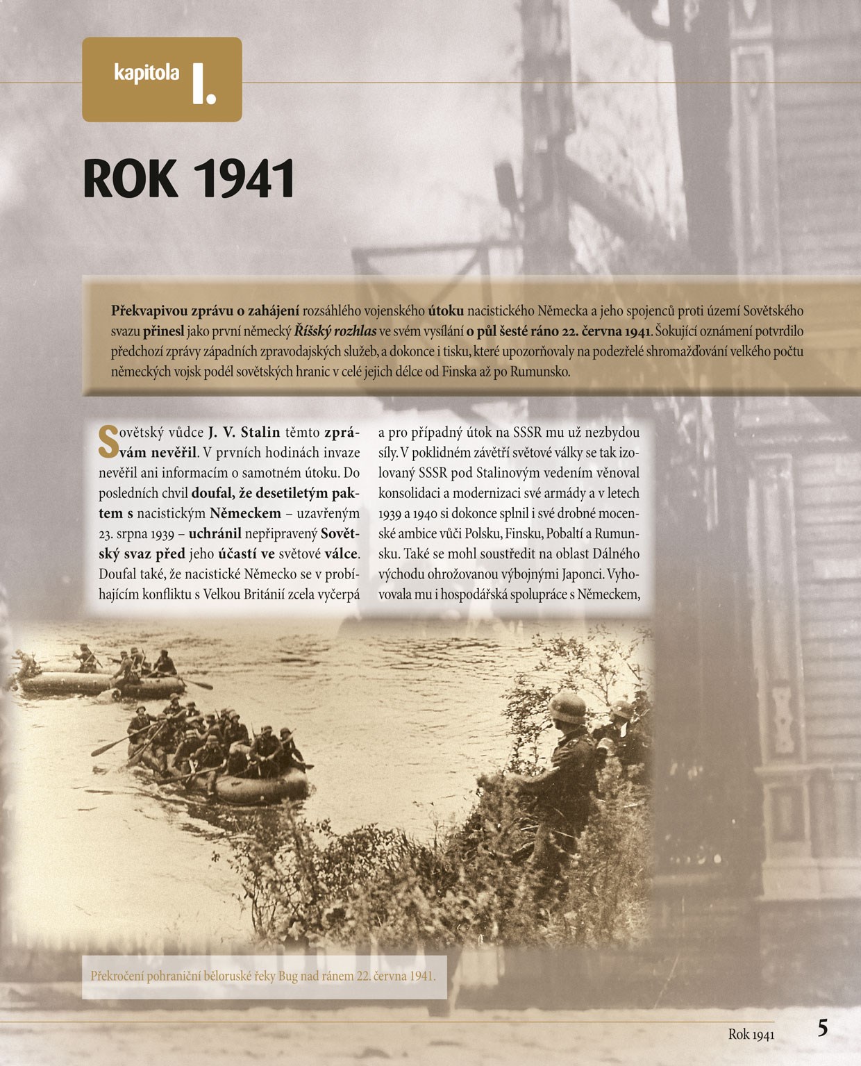 Dne 22. června 1941 zahájilo Německo operací Barbarossa útok na Sovětský svaz. Boje, které se následně rozhořely na celé východní frontě, přinesly nejen rozhodující momenty podstatné pro další vývoj druhé světové války, ale i nesmírné utrpení a strádání jak vojáků, tak civilního obyvatelstva. Kniha přináší ucelený a barvitý obraz těchto bojů, které se táhly dlouhé čtyři roky. Detailně líčí jednotlivé operace, ale i válečné hrůzy a zločiny páchané na obou stranách. Je doplněna řadou dobových fotografií i vložených memorabilií, jež umožňují blíže proniknout do historie tohoto konfliktu.
