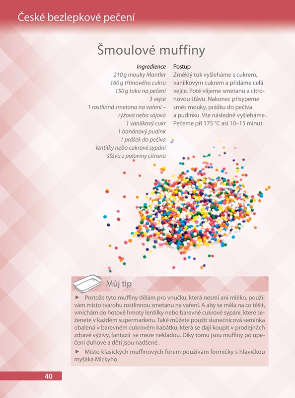 Recepty v této knize vycházejí ze zvyklostí a tradic běžné české rodiny pro potřeby celého roku, včetně klasických svátků, jako jsou Vánoce a Velikonoce, jsou však připraveny z bezlepkových surovin, a některé počítají také s dalšími alergiemi. Autorka je maminkou pěti dětí, pro něž už více než dvacet let připravuje bezlepkovou stravu. Velmi cenné jsou její zkušenosti a postřehy, které usnadní práci těm, kdo s bezlepkovým pečením začínají.