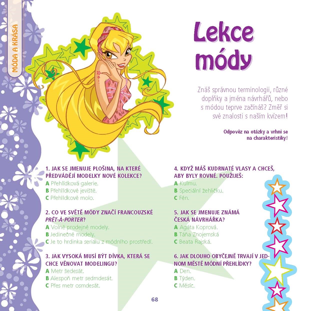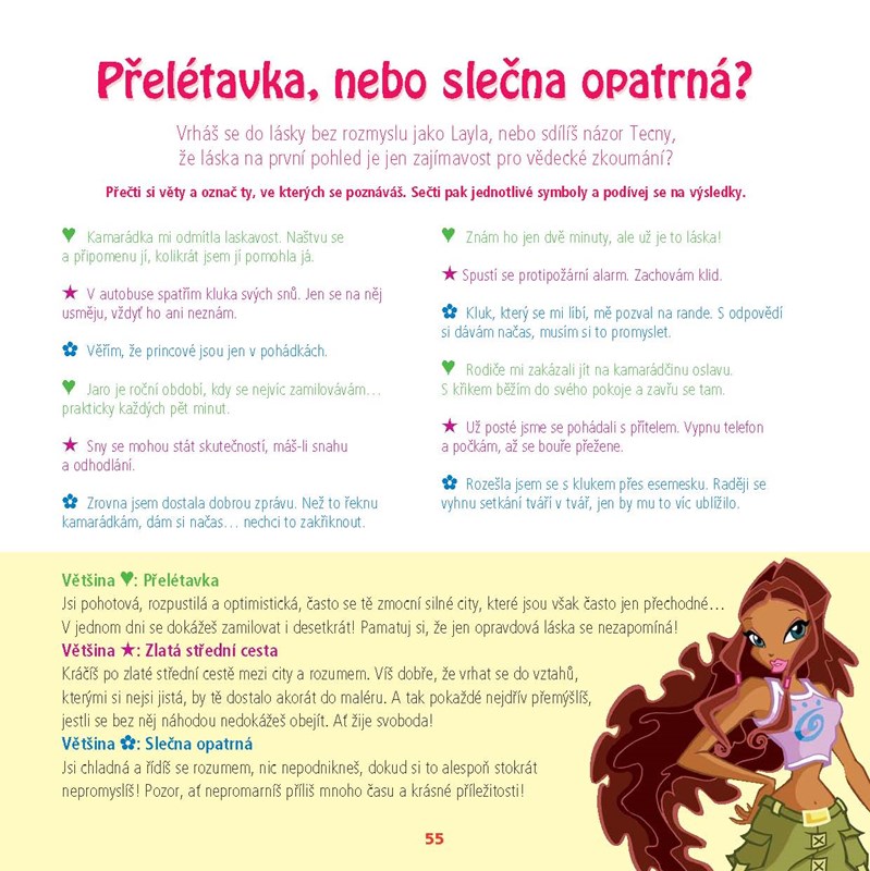 Kniha plná testů a zábavy! Hraj si s vílami Winx a zjisti víc sama o sobě pomocí testů osobnosti! Díky téhle knížce se naučíš spoustu věcí o magii, co se skrývá v tobě samotné s pomocí Winx clubu odhalíš, jaké máš netušené možnosti a získáš odpovědi na důležité otázky: Miluje mě? Čím budu, až vyrostu? Jaký sport je pro mě nejlepší? Tak neváhej a vrhni se na testování!