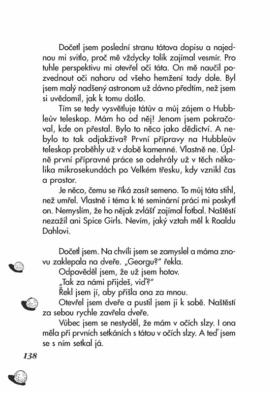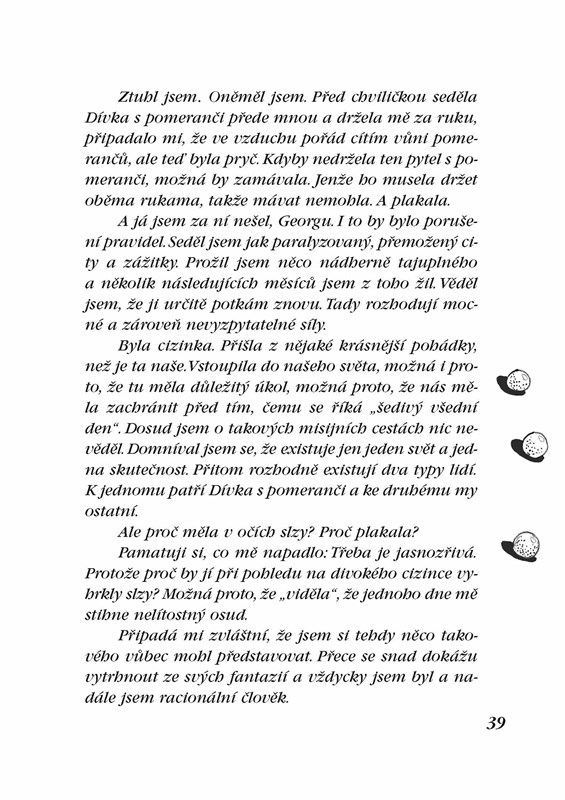 Oduševněle napsaný zamilovaný příběh, který osloví čtenáře všech věkových kategorií. V průběhu jednoho večera, během něhož 15letý hrdina Georg čte dopis od svého otce, probíhá před jeho očima celý příběh. Georgův otec zemřel před jedenácti lety, ale jeho dopis byl nalezen teprve nyní. Vedle líčení prostého příběhu lásky, pokládá otec synovi nejednoduché otázky, které se dotýkají samotné podstaty lidské existence.