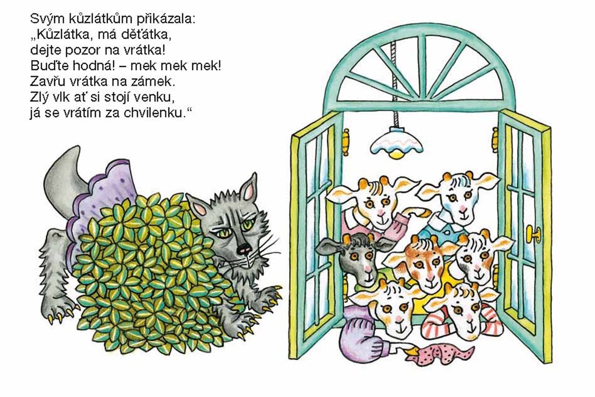 „To jsem já, bradička bílá! Otevřte, kůzlátka milá. Nesu sladké zelíčko,tak otevřte maličko!“ – Těmito líbeznými slůvky vlk přemlouvá kozlátka, aby mu otevřela, vyparáděný tak, že se musí děti smát, jak mu klobouk s pentlemi padne. Jedna z nejoblíbenějších dětských pohádek, kterou děti znají nazpaměť od nejútlejšího dětství. Verši doprovází Věra Provazníková.