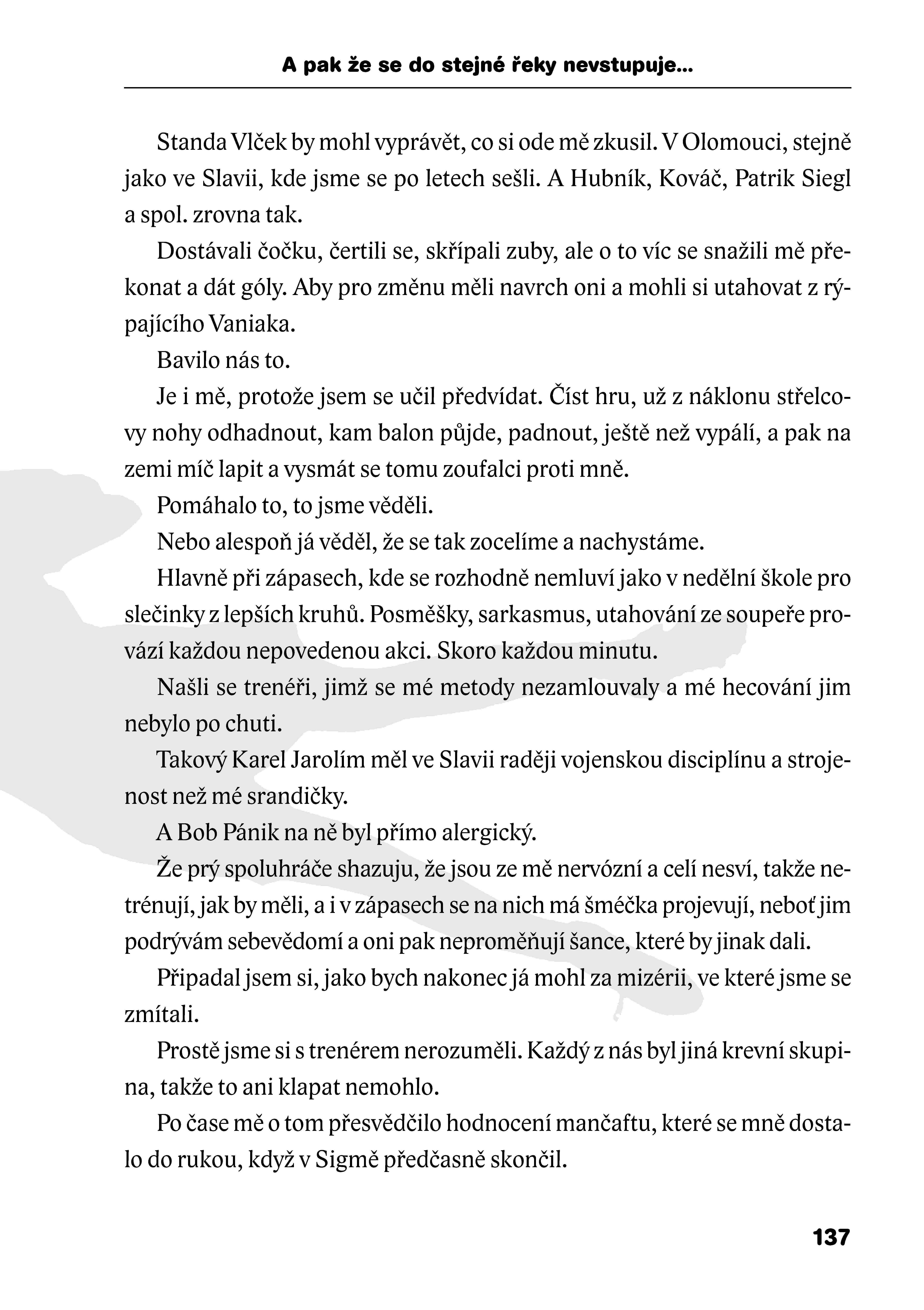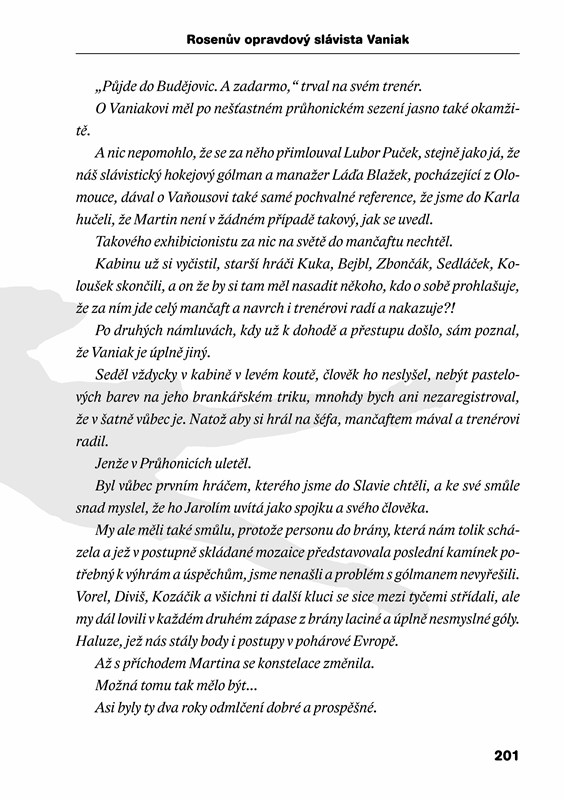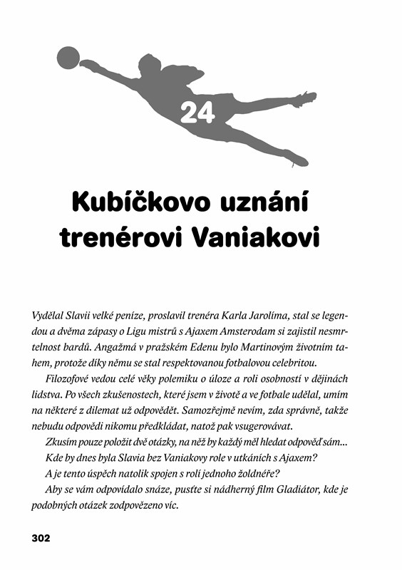 Spoustu zajímavých a dosud nepublikovaných příhod z fotbalového zákulisí, s nimiž se Vaniak svěřuje, doplňují vzpomínky někdejších trenérů, funkcionářů a spoluhráčů na brankáře, který si v duchu svého životního kréda získal fanoušky a vstoupil mezi slávistické legendy.