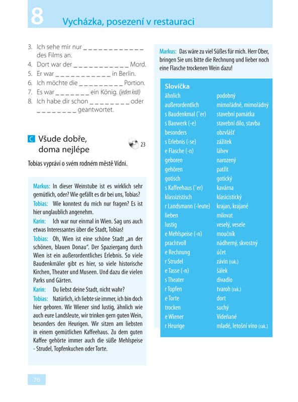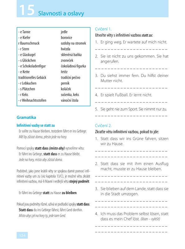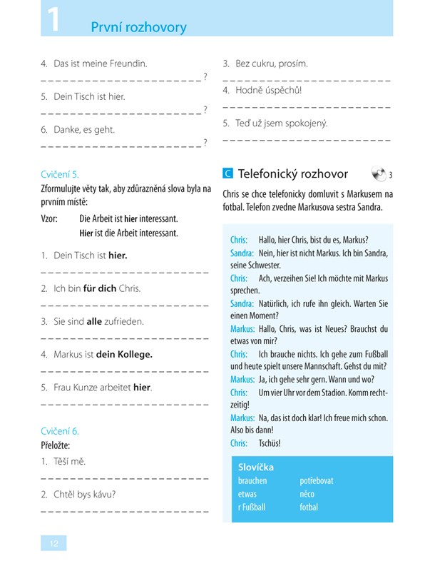 Ve 24 lekcích se seznámíte se základní německou mluvnicí i s náročnějšími tvary tak, abyste byli připraveni se německy nejen domluvit, ale také porozumět mluvenému a psanému textu. V rozhovorech vás ústřední dvojice Karin a Markus, jejich rodiny i přátelé zavedou do různých prostředí. Budete s nimi prožívat jejich radosti a starosti v rozmanitých situacích denního života, při rodinných oslavách, na cestách, na dovolené, při nakupování nebo v zaměstnání, při vyřizování různých úředních i osobních záležitostí. Zároveň budete mít možnost získané vědomosti procvičit prostřednictvím různých cvičení, překladů, otázek a hádanek. Řešení můžete zapisovat přímo do knihy, která je uspořádána zčásti jako pracovní sešit. Správné odpovědi a také překlad rozhovorů najdete v závěru publikace.