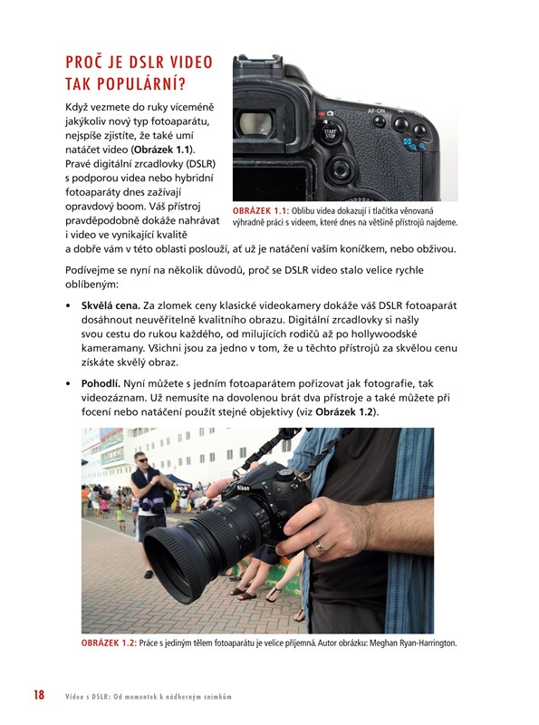 Video je nejsilnějším nástrojem pro vyprávění příběhů a komunikaci. A je mnohem jednodušší natáčet video s digitální zrcadlovkou, kterou máte doma, než pořizovat nová drahá zařízení za desetitisíce. Ať už natáčíte zážitky z dovolené, rodinná videa nebo pro komerční využití například v reklamě, v této knize naleznete tipy a návody od profesionála, který vám poradí, jak z vašeho vybavení dostat ty nejlepší záběry. Naučíte se, jak se vyhnout základním problémům, jako je moc tmavé či přesvětlené video, třesoucí se obraz, neostré záběry nebo nekvalitní zvuk. Richard Harrington ve své knize nejen ukazuje, jak natáčet skvělá videa s vybavením, které již máte doma, ale uvádí také množství tipů na cenově dostupné doplňky, které vašemu videu dodají profesionální vzhled.