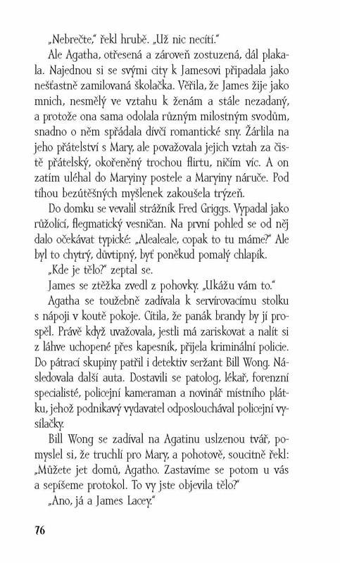 Když neznámý útočník poničí několik zahrad a následně dojde k šokující vraždě, Agatha okamžitě chytí příležitost za pačesy a pustí se s Jamesem do soukromého pátrání. Každý skrývá nějaké tajemství a zdá se, že ani sama oběť neměla svědomí úplně čisté…