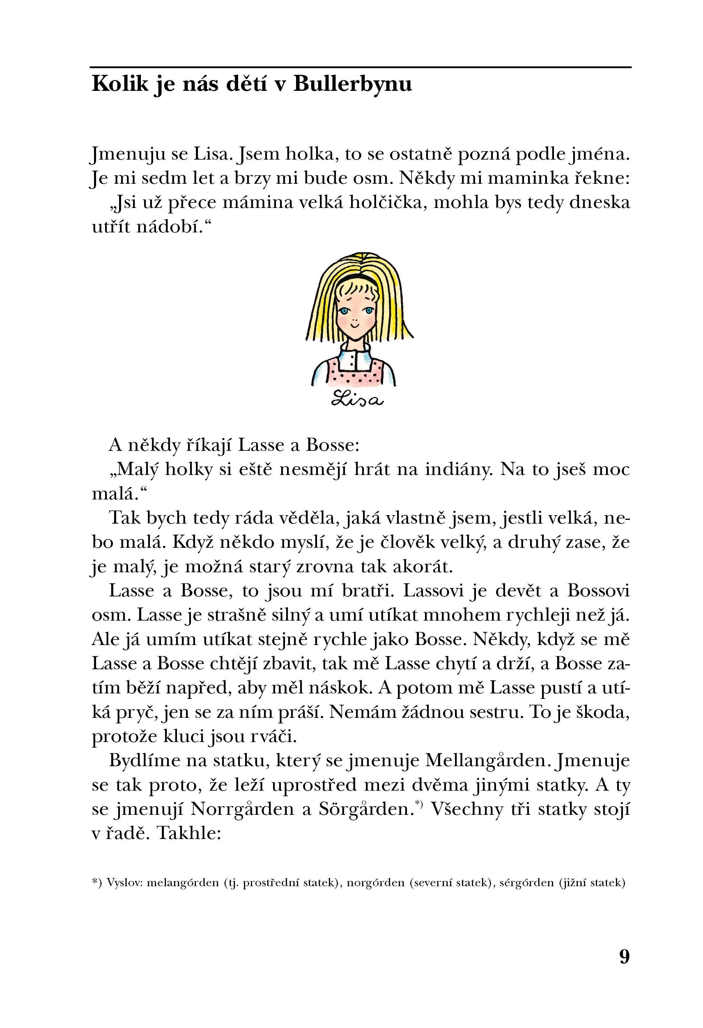 Pokaždé, když se na našem knižním trhu objeví tato knížka Astrid Lindgrenové, nositelky Ceny H. Ch. Andersena, udělá radost malým i větším čtenářům. Šest dětí – Lisa, která všechno vypravuje, její dva bratři Lasse a Bosse, sestry Anna a Britta a kamarád Olle – v ní prožívá veselé či méně zábavné každodenní příhody na švédském venkově. Ve třech částech knihy strávíme s dětmi celý rok: jaro s koťátky, léto s prázdninami, podzim se školou, zimu s vánočními svátky. A protože jsou to příběhy, které v různých podobách může zažít každé dítě, těší se stále neutuchajícímu zájmu čtenářů na celém světě.